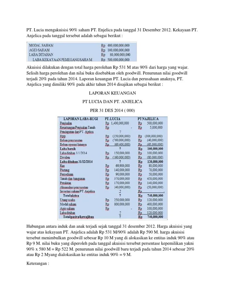 Memasukkan laporan keuangan meliputi laporan laba rugi, laporan laba. Kemudian di masukkan ke dalam kertas kerja konsolidasi. Dalam kertas kerja konsolidasi tiap laporan. Laporan laba rugi, laporan laba ditahan dan neraca konsolidasi 4 comments laporan. Pt akal kertas, tbk, memproduksi dan menjual amplop kertas.